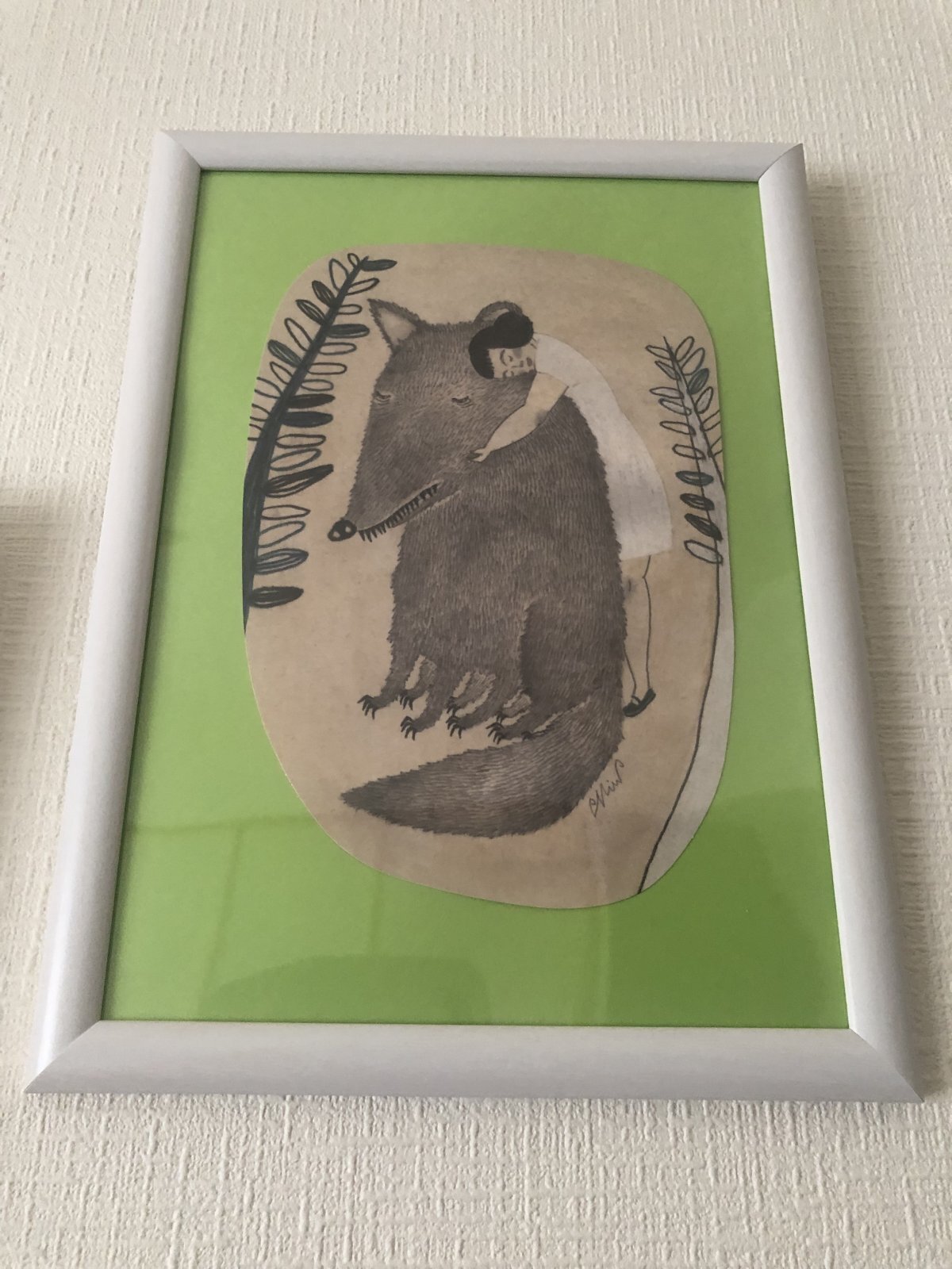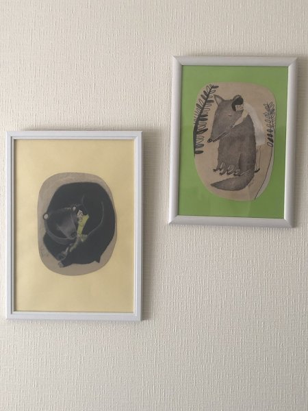 1枚のポストカード 2026年03月09日 本屋さんの一角に森田M iWさんの ポストカードや小物が置いてありました。 8本足のオオカミが 亡き愛犬の時折見せる表情に似ていて 思わず手に取りました。 熊もオオカミも獰猛で想像を超えた絵で 「いつもの奇蹟」という題名です。 「いとしきモノ」という詩画集に 載っているものです。 動物モチーフが大好きな私には 心惹かれるものがたくさんありましたが 「過ぎたるは…」を心がけ いせごろう王国にならないようにします。 孫が来た時のお道具箱の中の 色画用紙を拝借して 簡単な額に入れて飾りました。 井芹 次» 藍木野の暮らし