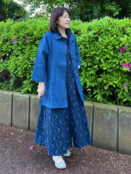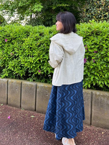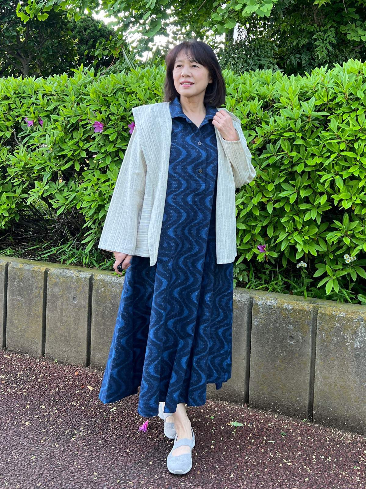 夏絣の羽織物 2026年04月28日 新緑から差す木漏れ日と青空のコントラストが美しい季節になりました。 今日はビッグワンピースフレンチ袖に夏絣のジャケットを合わせました。 青色のグラデーションで織られたよろけのワンピースと青色の夏絣の角ショールジャケットは爽やかな雰囲気。 夏絣白のフード付きジャケットは柔らかい雰囲気。 普段から沢山袖を通しますというお客様が多くいらして素敵な暮らしだなぁと感じます。 私はついつい箪笥に大事にしまってしまいます。杉本 次» 藍木野の暮らし