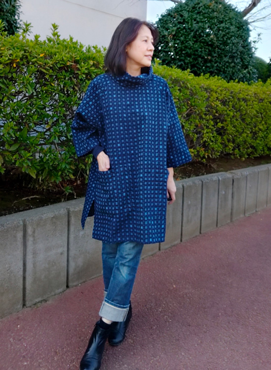 ツーポケットブラウス(四角遊び縹色・青) [BL8N46bl]