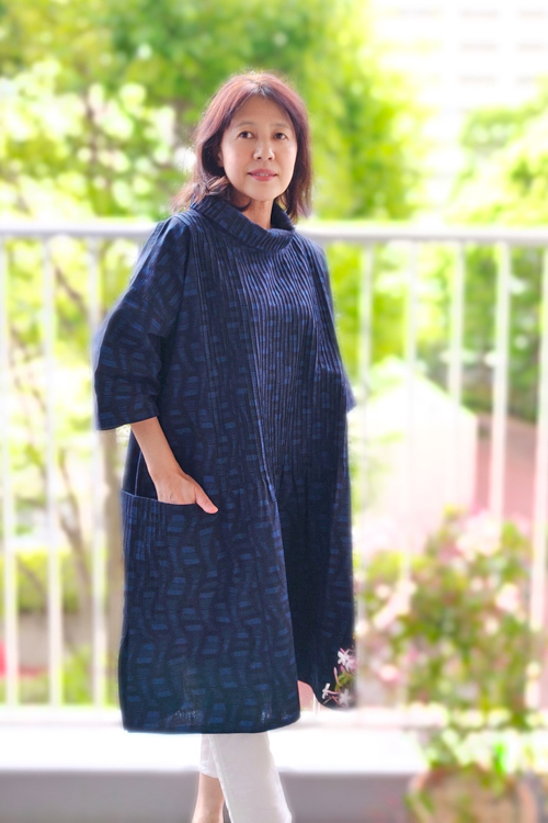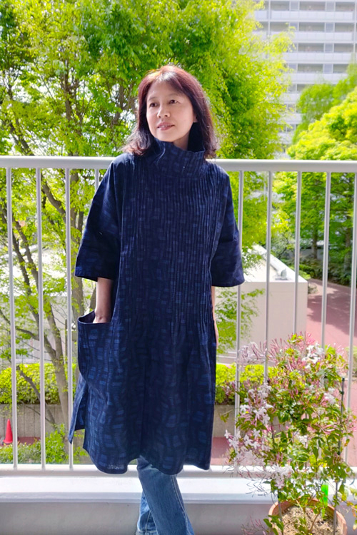 前後身頃、衿、ポケットのピンタックがしっかりと柄合わせされているのも藍木野のこだわりです。