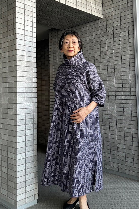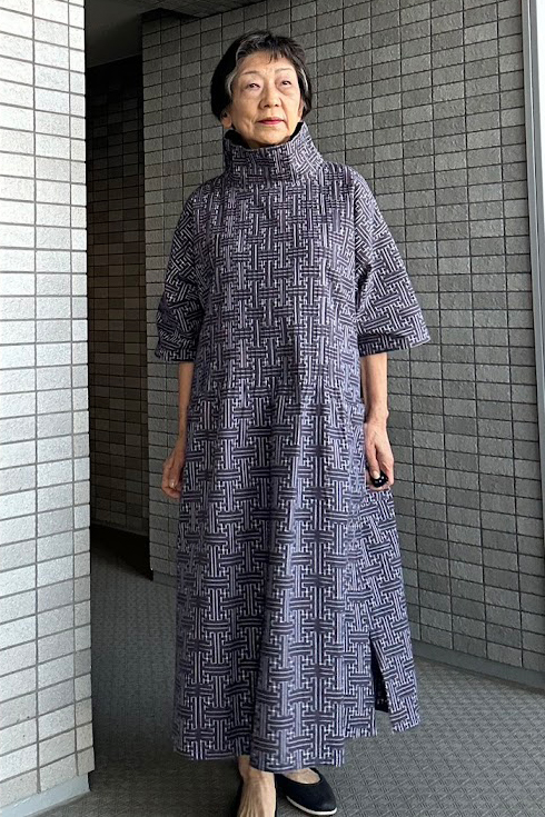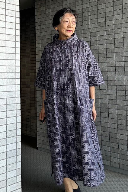 昔ながらの伝統柄・さや型のピンタックワンピース。