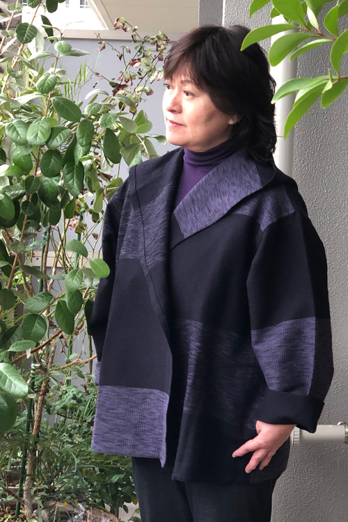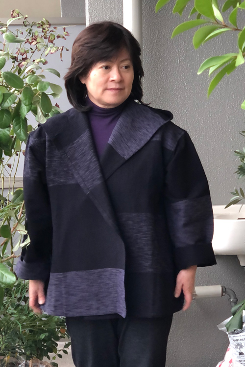 人気の四重奏の反物で、軽やかに羽織るジャケットを作りました。