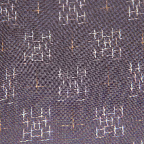 紫がかったグレーに白十字がお花模様に見え所々にうすい黄色の十字が浮かぶ優しい柄。