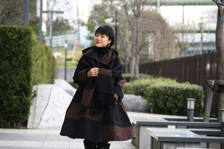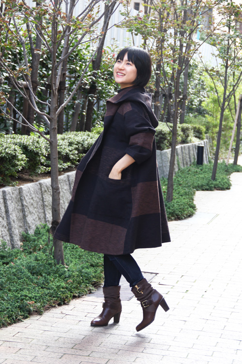 「モダンな配色で軽やかに暖かく体を包み込んでくれる、綿のコート」