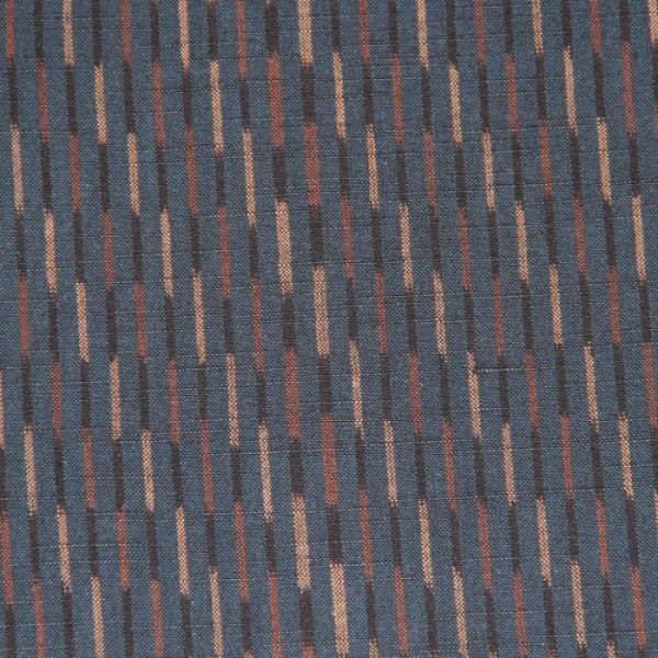ほんのり緑がかった青地に黒、茶、ベージュを織り込んだ反物。