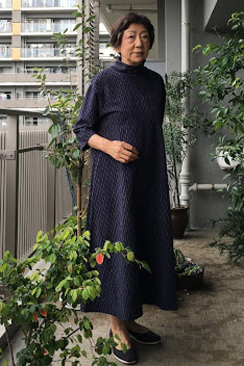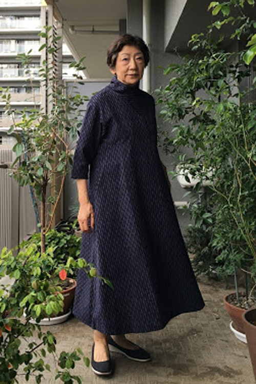 「美しいフレアーラインの立ち襟ワンピース」