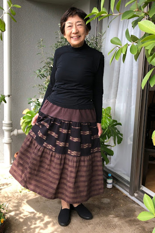 ティアードスカート(矢羽根茶)
