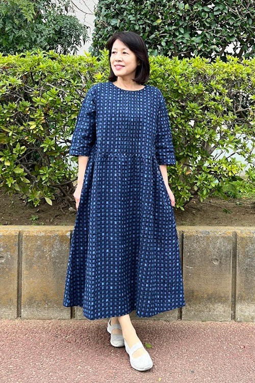 クラシカルワンピース(四角遊び縹色) [O16BN41nv]