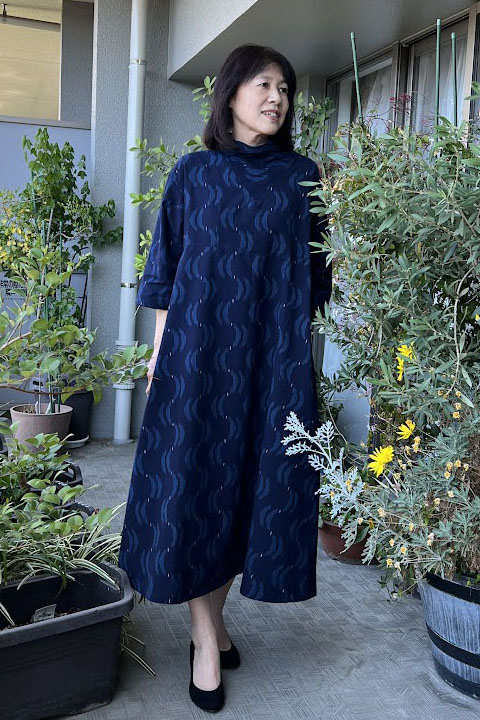 立ち襟ワンピース(波間の月)