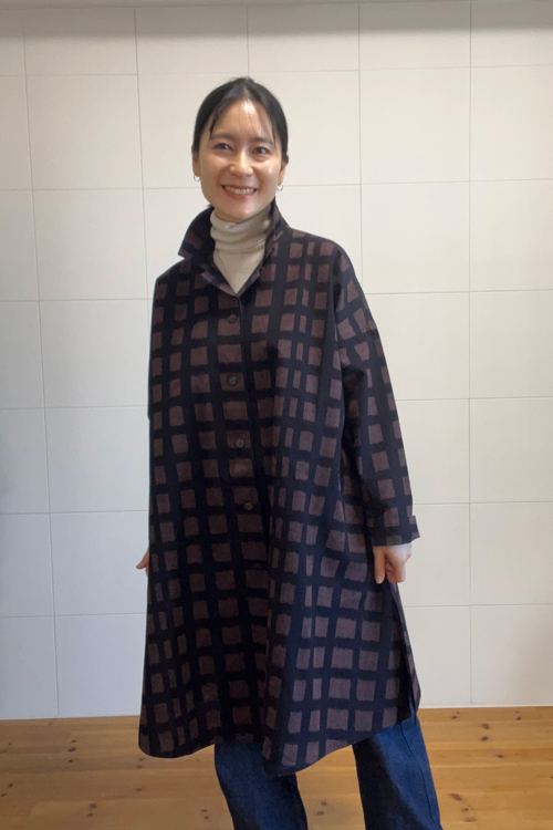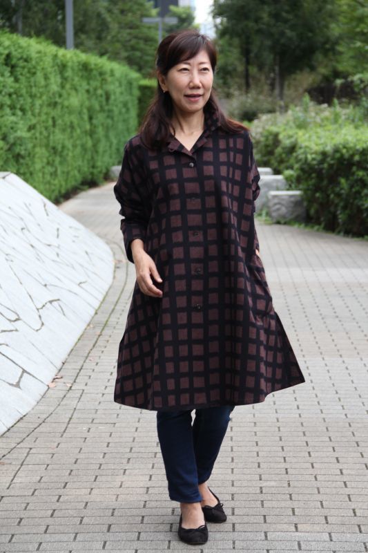 ボタンを閉めて、シャツブラウスのように、重ね着をしてコートのようにと 着ていただける万能な一着。