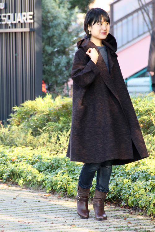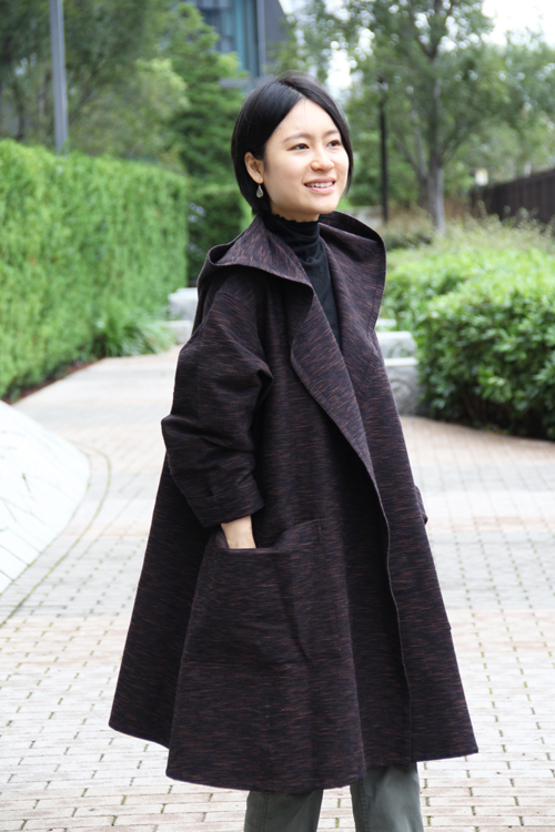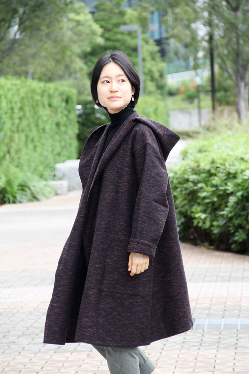 「モダンな配色で軽やかに暖かく体を包み込んでくれる、綿のコート」
