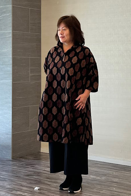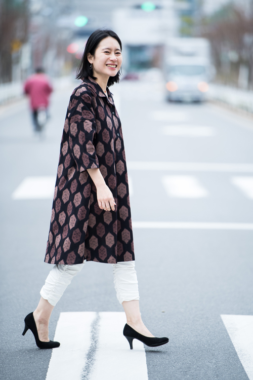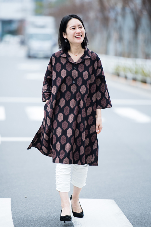 たっぷりと反物を使い仕立てたAラインのシルエットは動くと揺れきれいです。