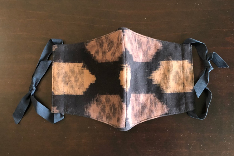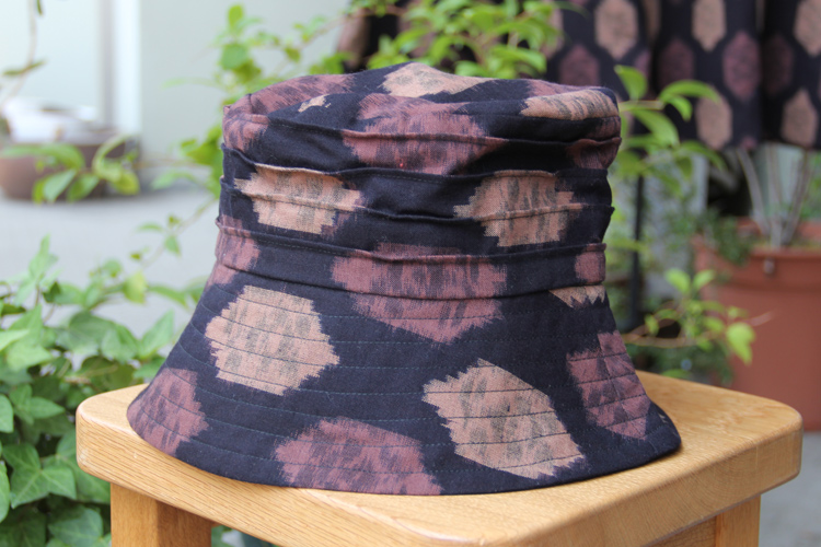 茶の濃淡で糸を染め分け亀甲柄を織りあげました。