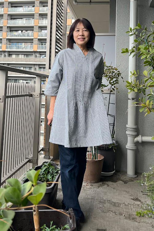 七分袖なので春夏は一枚で、冬はインナーを重ねて着て頂けます。