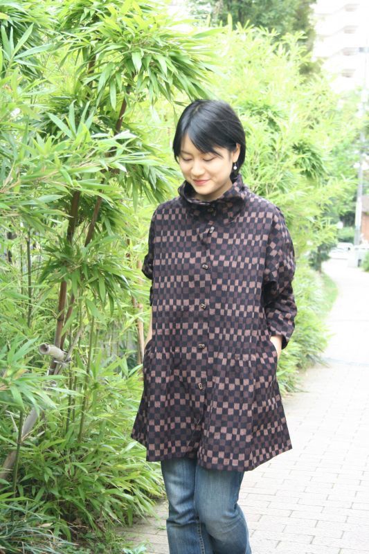 黒と茶、ベージュの3色で奥行きのある市松柄。
