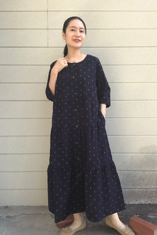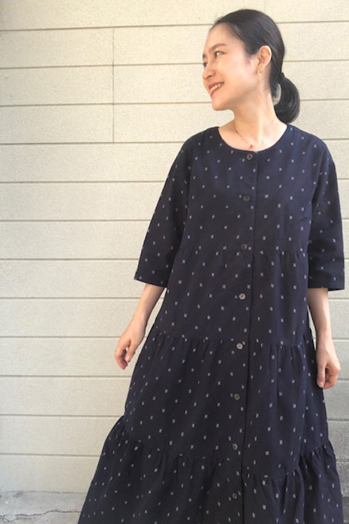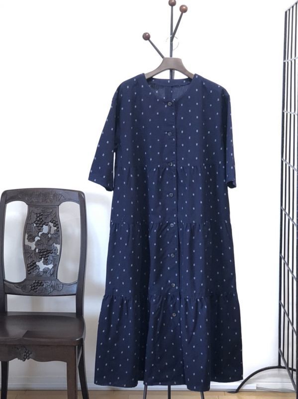 ティアードワンピース前あき・とびあられ紺